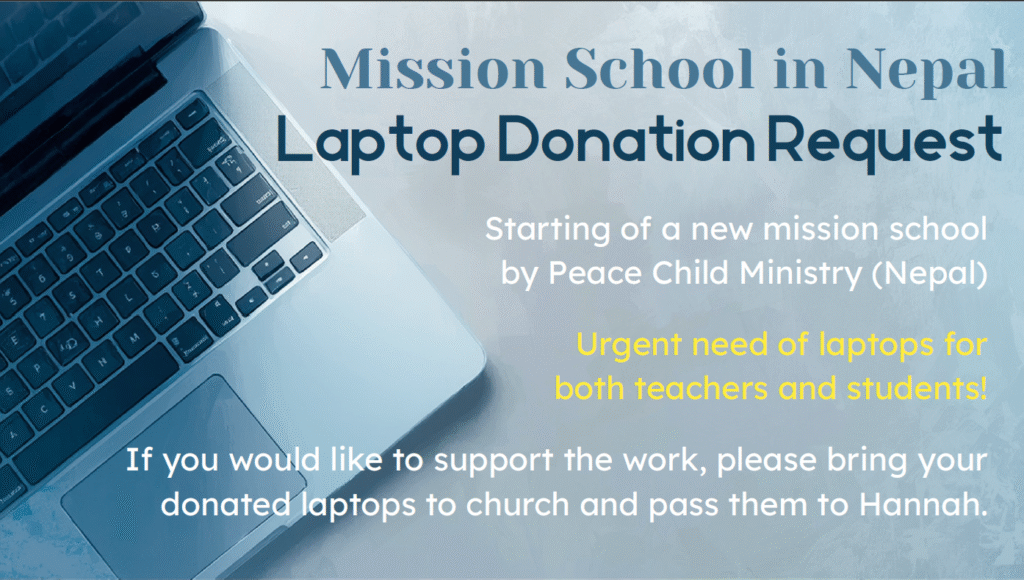 They are in urgent need of laptops for both teachers and students. Even older laptops (as long as they are still working) can make a big difference. Would you prayerfully consider donating a used or new laptop? Your device could become a powerful tool for learning and transformation.